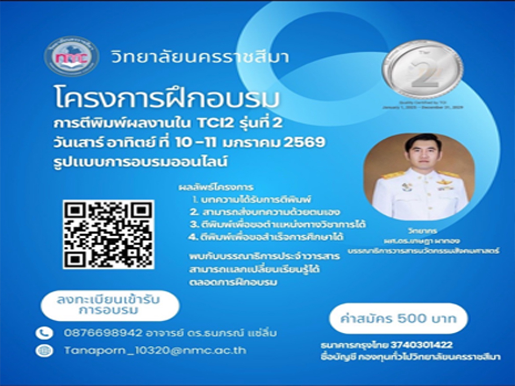 #สถาบันส่งเสริมและพัฒนาวิชาการด็อกเตอร์เกษ (IADP) ขอเชิญชวนคณาจารย์ นักวิจัย นักศึกษา และผู้สนใจด้านการเขียนบทความวิชาการ #เข้าร่วม โครงการฝึกอบรมการตีพิมพ์ผลงานใน TCI2 รุ่นที่ 2..