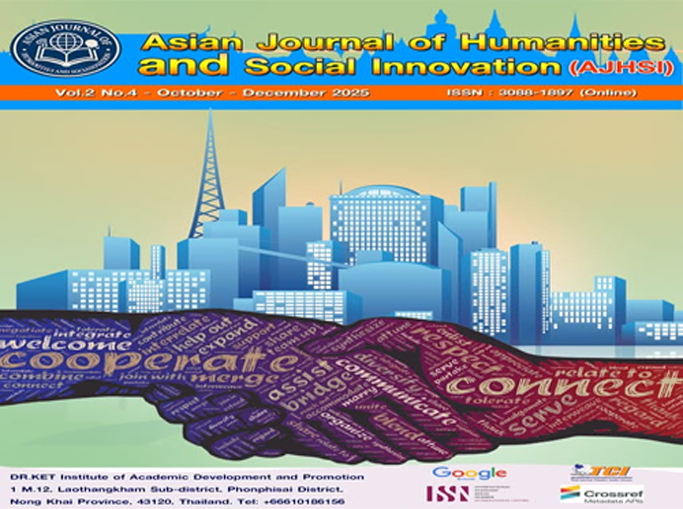 The Asian Journal of Humanities and Social Innovation (AJHSI) ภูมิใจประกาศการเปิดตัวฉบับที่สี่ของปี 2025 โดยมีบทความทางวิชาการคุณภาพสูง 5 บทความที่สะท้อนถึงความมุ่งมั่นอย่างต่อเนื่องของวารสารต่อความเป็นเลิศทางวิชาการและนวัตกรรมในมนุษยศาสตร์และสังคมศาสตร์